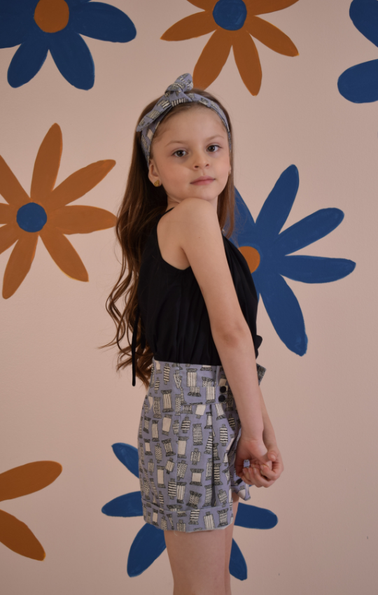 Short Estampado Hilos Denim Con Pretinas A Los Lados