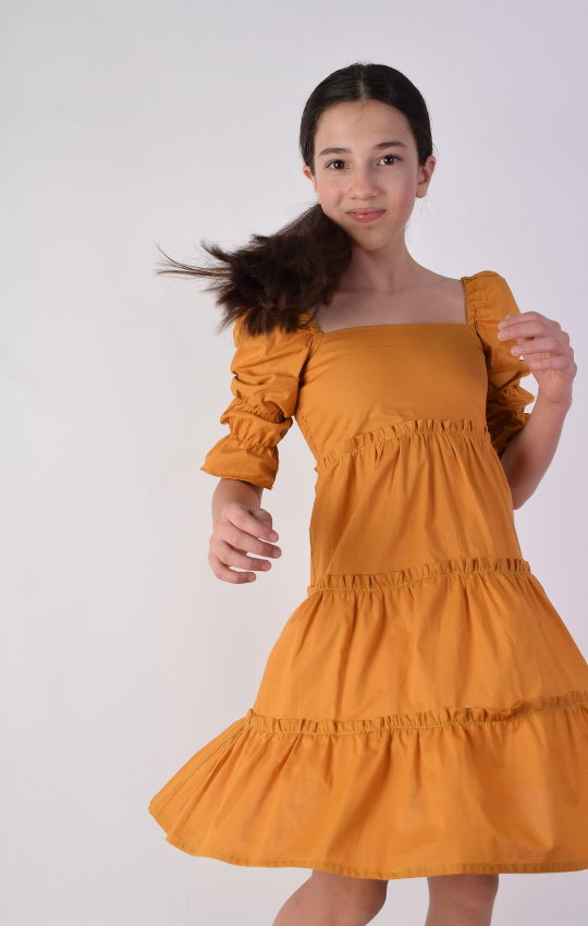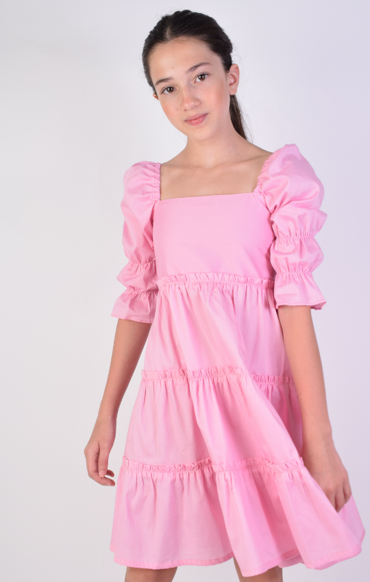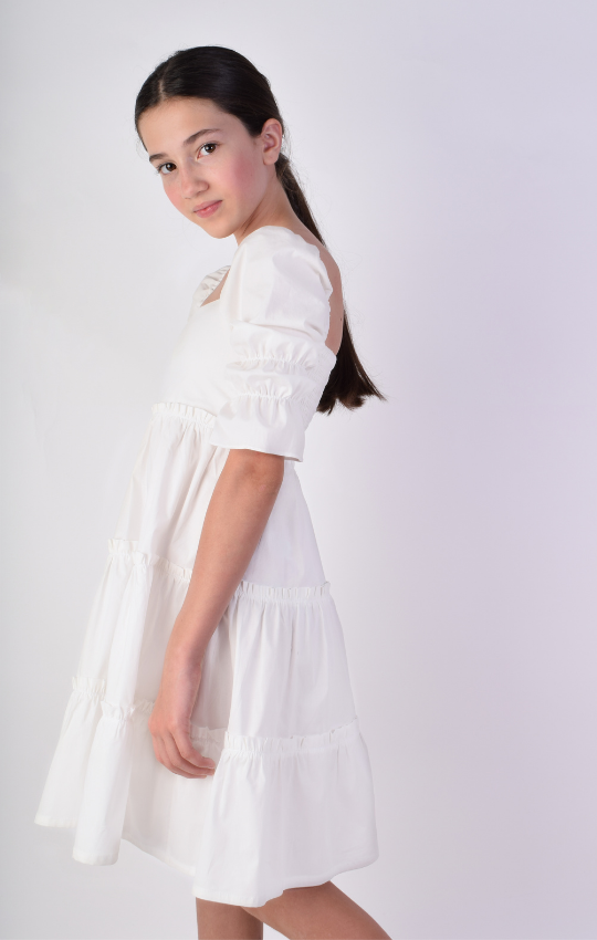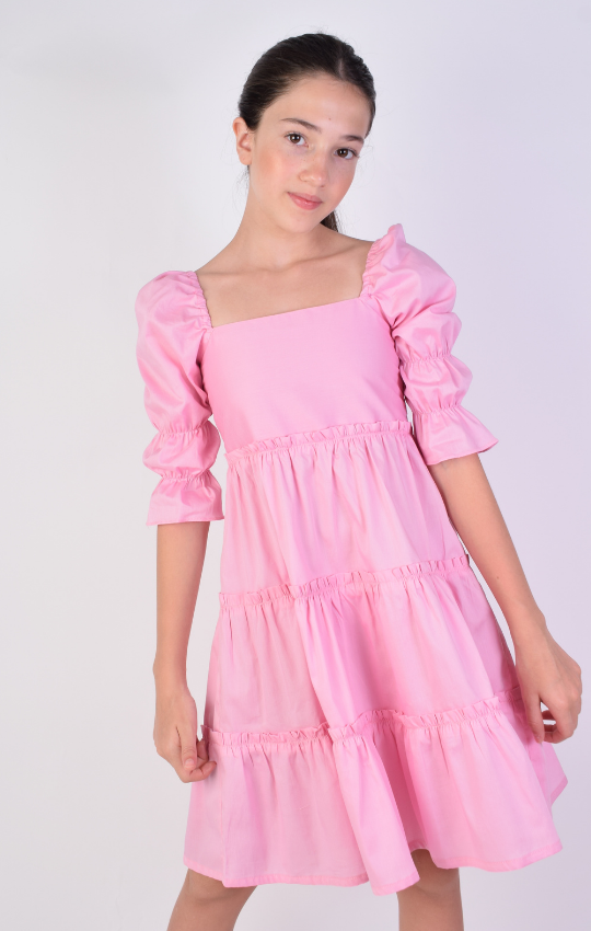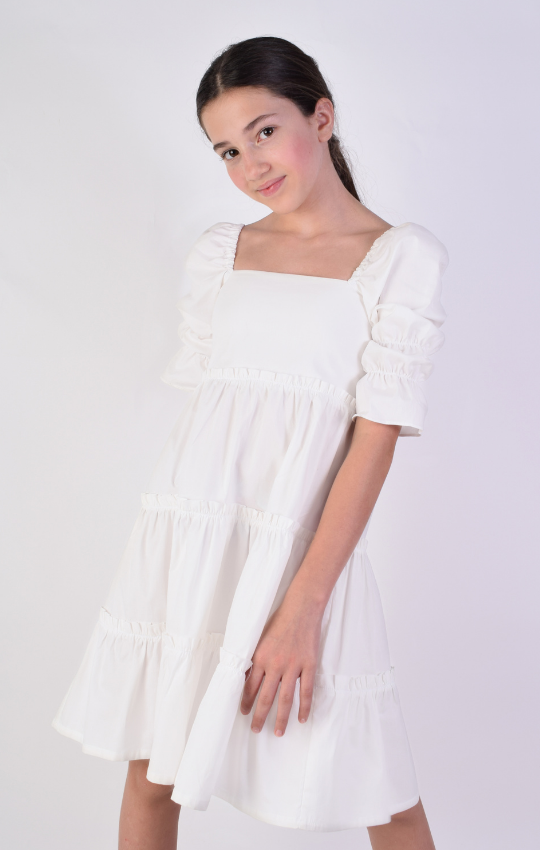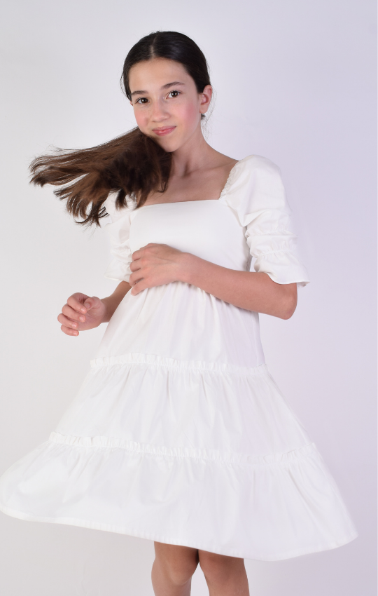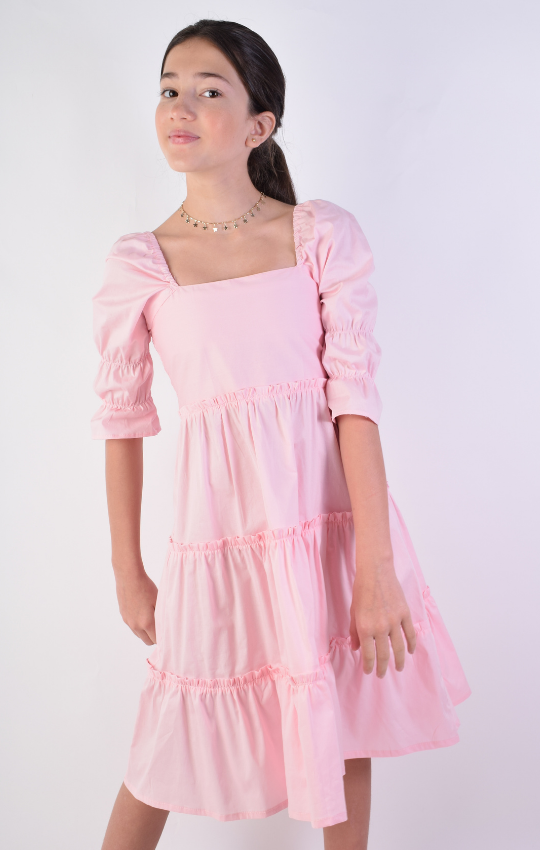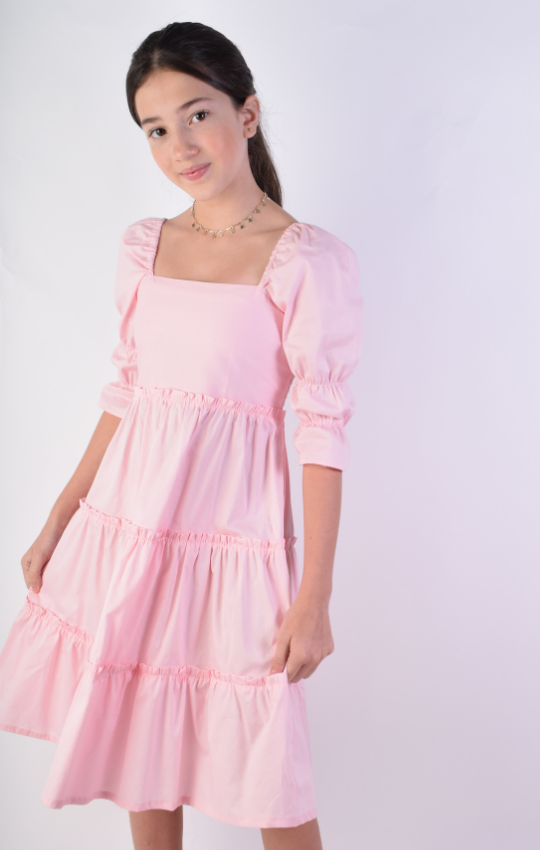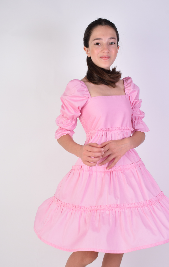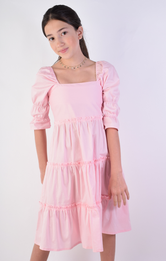 Vestido Kids Cuello Cuadrado Mangas Englobadas