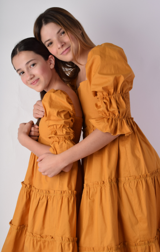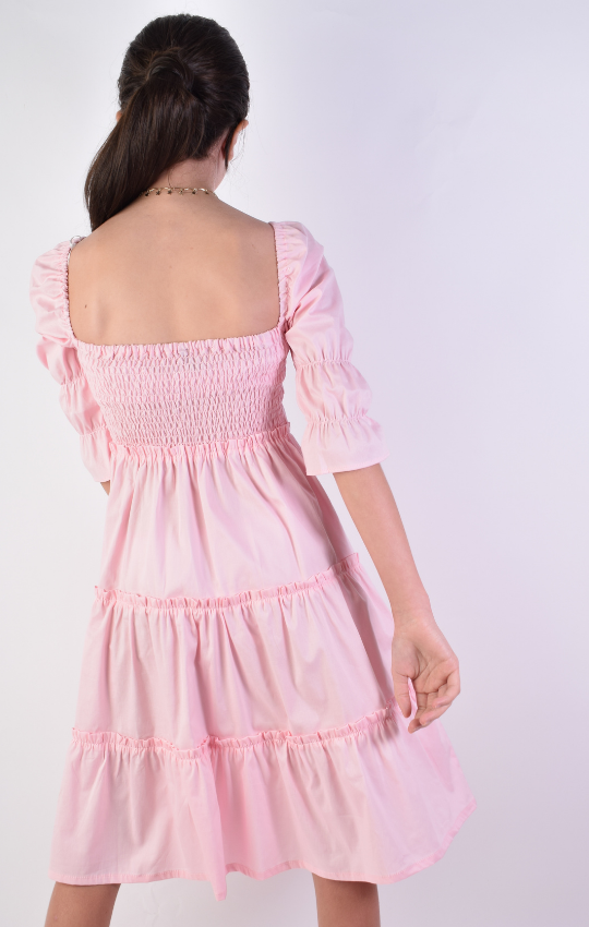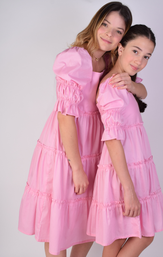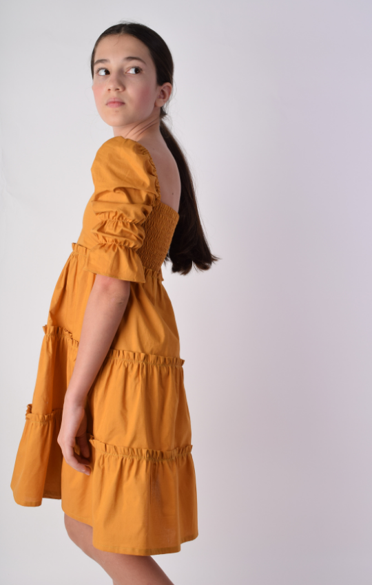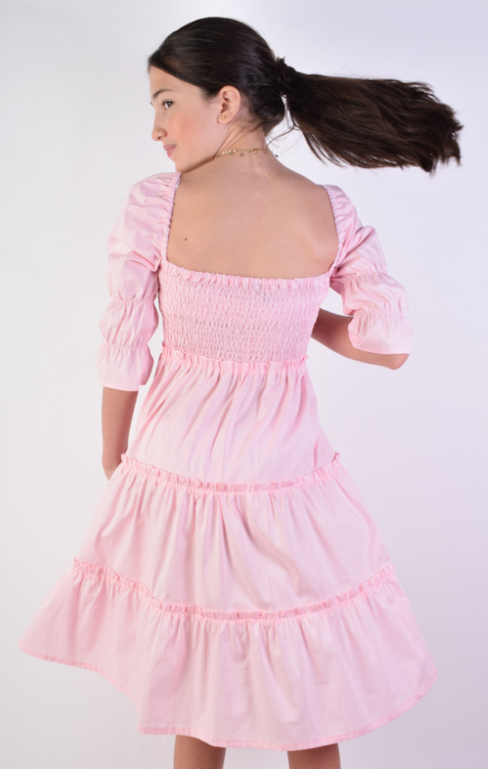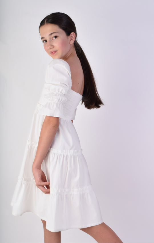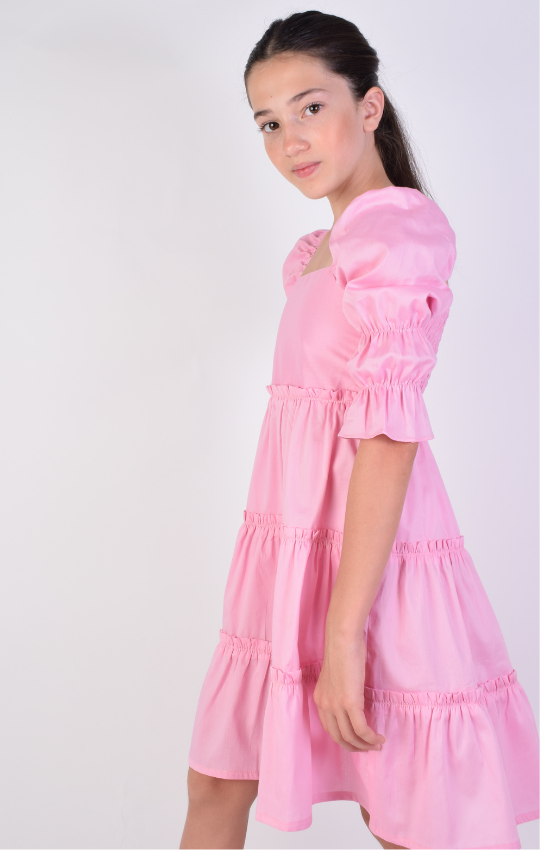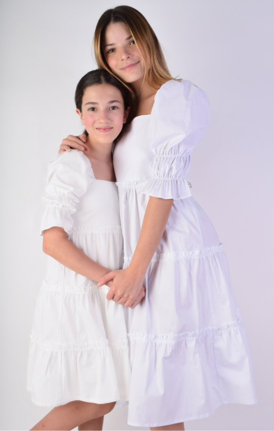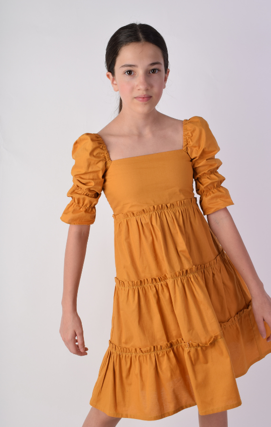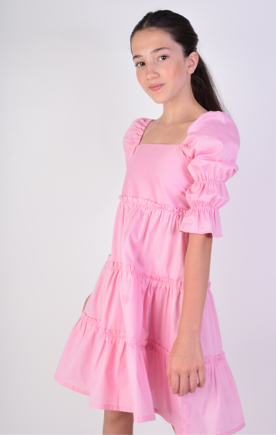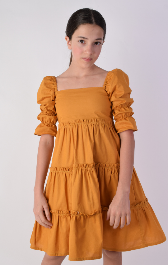 Vestido Kids Cuello Cuadrado Mangas Englobadas