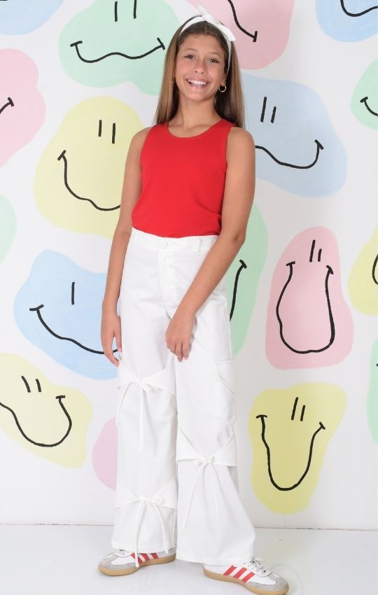 Pantalon Drill Blanco Cargo Con Ajustadores