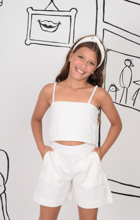 Set Lino Top Con Perlas +Short Pliegues