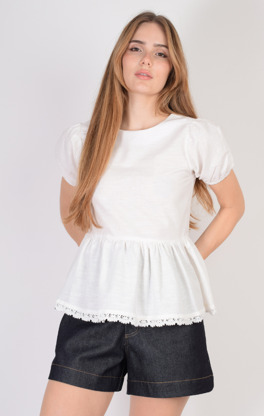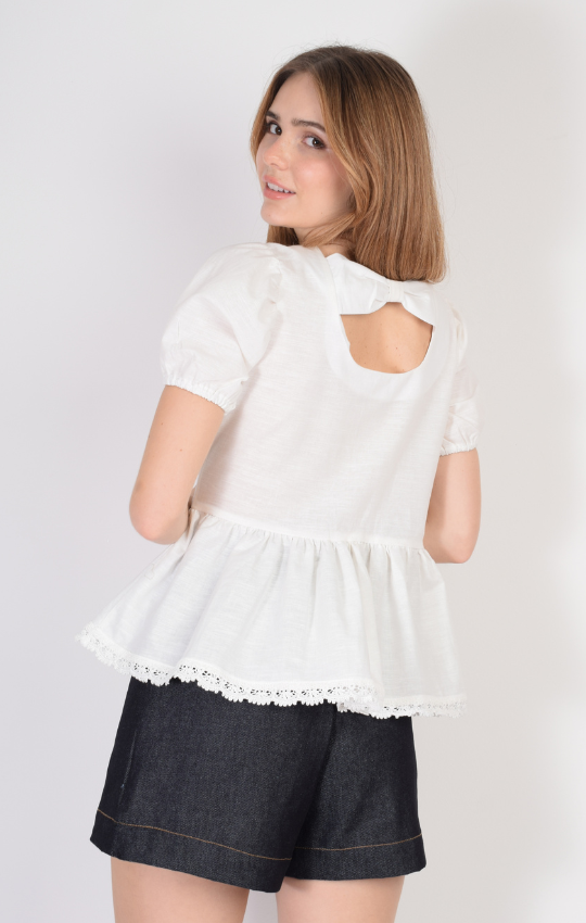 Blusa Lino Accesorio Ruedo Lazo Espalda