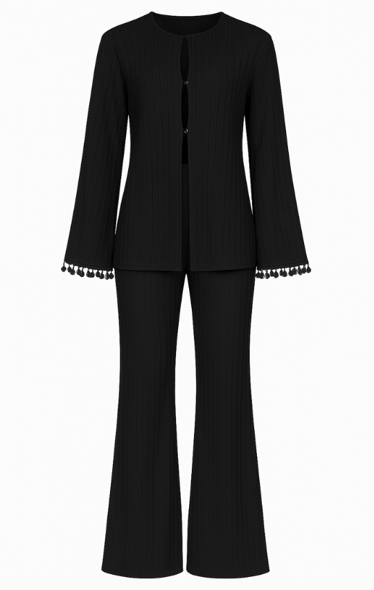 Set Camisa Manga Larga Adorno Ruedo + Pantalón