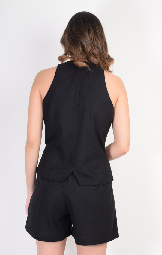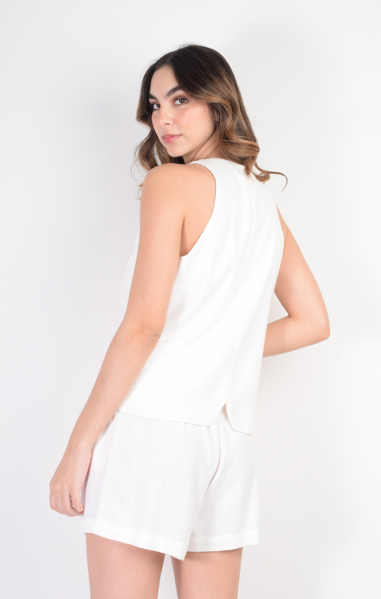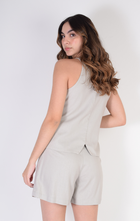 Set Chaleco Cuello Alto + Short Con Pliegues