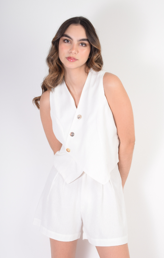 Set Chaleco Cuello Alto + Short Con Pliegues