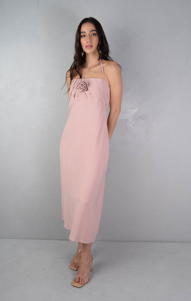 Vestido Halter Corte Fluido Con Tira En Contraste