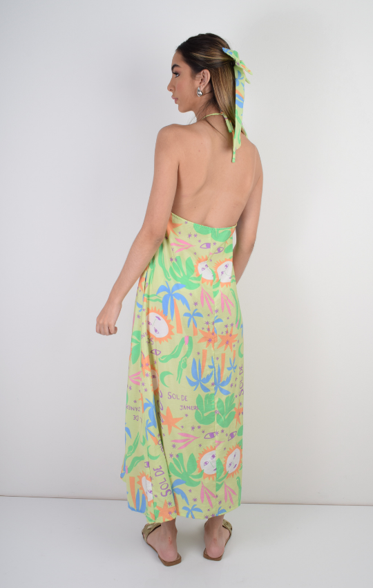 Vestido Halter Silueta Amplia Estampado