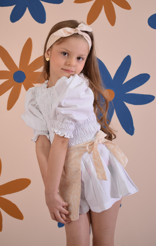 Falda Short Plizada Con Capa Estampada Amarrada (122207)
