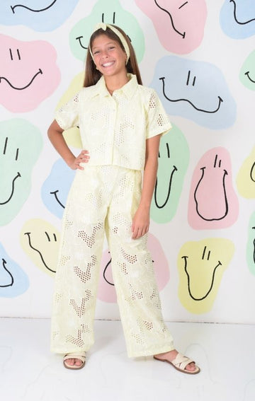 Set Ojalillo Camisa Corta Con Botones + Pantalon