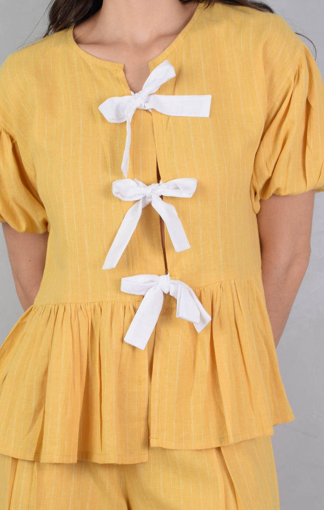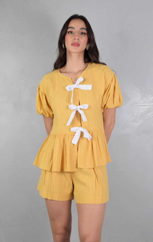 Set Rayitas Blusa con lacitos + Short Pliegues