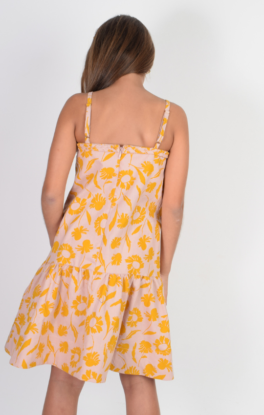Vestido Flores Mostaza Arandelas Niña